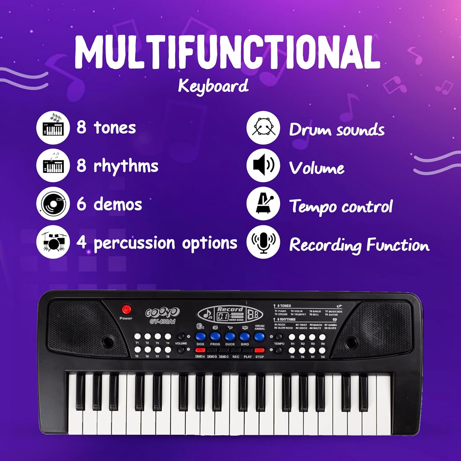 - Gesto kids piano toys built-in 8 tones, 8 rhythms, 6 demo, 4 percussion, 4 animals sound, volume control and tempo control, produces high quality sounds and effects. Encouraging kids to explore different sound combinations. Whether experimenting with new rhythms or trying out a different tempo, this is the perfect introduction to musical instruments