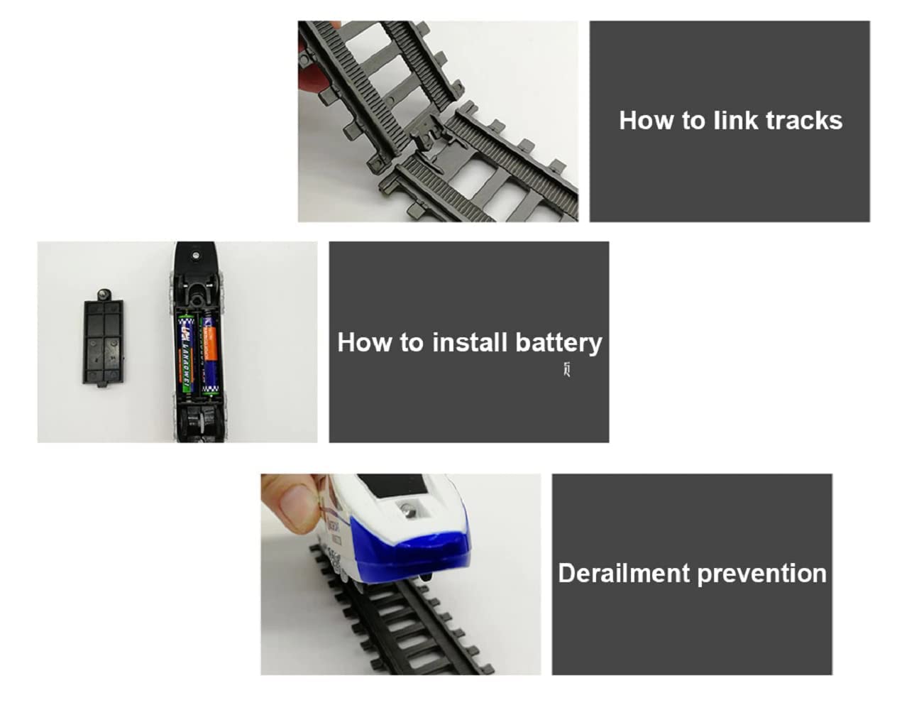 • Train Set with Tracks. Comes With Realistic Sounds, Flashlight and The Train Chugs On The Tracks. Children will be thrilled to see the train moving with lights encouraging them to laugh and chase the train.